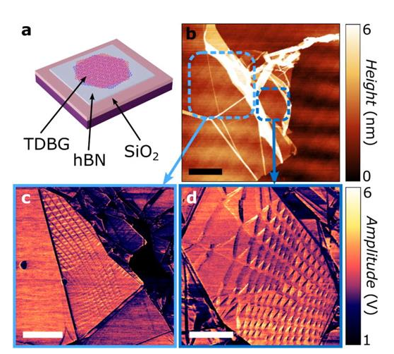 Two-dimensional (2D) materials have attracted significant interest due to their tunable physical properties when stacked into homo- and heterostructures. Twisting adjacent layers introduces moiré patterns that strongly influence the material’s electronic and thermal behavior. In twisted graphene systems, the twist angle critically alters phonon transport, leading to reduced thermal conductivity compared to Bernal-stacked configurations. However, experimental investigations into thermal transport in twisted structures remain limited. Here, we study the local thermal properties of low-angle ( ) twisted double bilayer graphene using scanning thermal microscopy. We find an increase in thermal resistance of KW−1 compared to untwisted bilayers, attributed to changes in both intrinsic thermal conductivity and the tip–sample interface. Analytical modeling shows that such variations may be attributed to intrinsic conductivity changes or modifications of the tip–sample interface resistance, or a combination of both. Our study highlights how twist alters the overall thermal resistance network in graphene heterostructures, providing direct nanoscale evidence that moiré engineering impacts multiple pathways of heat dissipation. These insights advance understanding of thermal transport in twisted 2D systems and open avenues for thermal management in twistronic devices.
